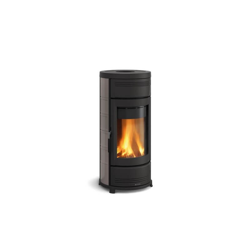 & Free ShippingLA NORDICA EXTRAFLAME HELGA EVO MODEL HOUTKACHEL Buitenbekleding in majolica Gebogen gietijzeren branddeur Binnenbekleding van de haard in gietijzer/Nordiker met naverbranding Verticale vlamhaard Voet en kop in geëmailleerd gietijzer Ronde houtkachel met bekleding in staal die kan verwarmen tot 209 m3
